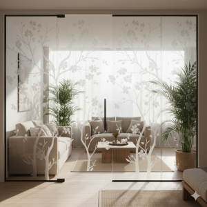 - Tăng Tính Riêng Tư: Đây là một trong những công dụng quan trọng nhất của sản phẩm. Các họa tiết hoa văn được in mờ hoặc trắng đục giúp che chắn tầm nhìn từ bên ngoài, bảo vệ sự riêng tư cho các không gian như phòng tắm, phòng ngủ, hoặc các vách ngăn văn phòng. Tuy nhiên, nó vẫn cho phép ánh sáng tự nhiên xuyên qua, giúp không gian luôn sáng sủa và không bị bí bách.