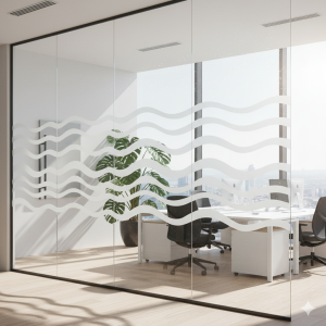 - Họa Tiết Hình Học (Geometric): Các mẫu hình vuông, hình tròn, sọc ngang, sọc dọc… tạo ra phong cách hiện đại, gọn gàng và chuyên nghiệp. Rất thích hợp cho các văn phòng, vách ngăn kính trong tòa nhà cao tầng.